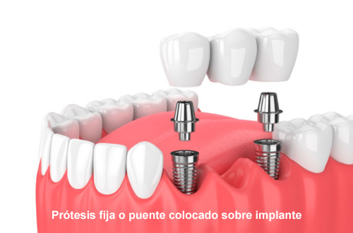 Prótesis fija o puente colocado sobre implante